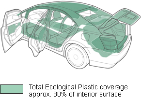Toyota City, Japan, October 11, 2011—Toyota Motor Corporation (TMC) has successfully used "Ecological Plastic"1 to cover approximately 80% of the total interior surface area in the partially redesigned Japan-market "Sai" gasoline-electric hybrid sedan.