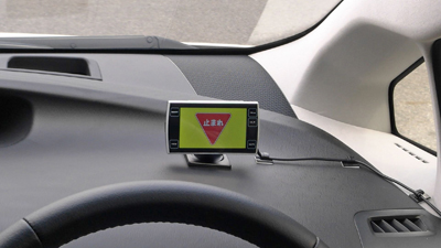 In addition to the drive recorders, participant vehicles were fitted with an onboard camera that detects stop signs and red traffic lights at intersections and a warning system that issues aural and visual warnings to the driver if intersections are approached at high speed. Surveys will be conducted on the effects of the system and driver acceptance, with the results to be used in future technology development.
