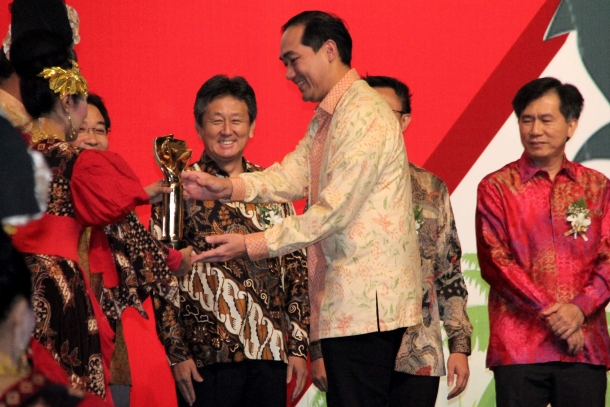As Indonesia's best performing exporter, PT Toyota Motor Manufacturing Indonesia has received the Primaniyarta Award from the country's Ministry of Trade. The award was presented to Hiroyuki Fukui, president commissioner of TMMIN, by Muhammad Lutfi, Indonesia's Minister of Trade, during the Opening Ceremony of Trade Expo Indonesia 2014.