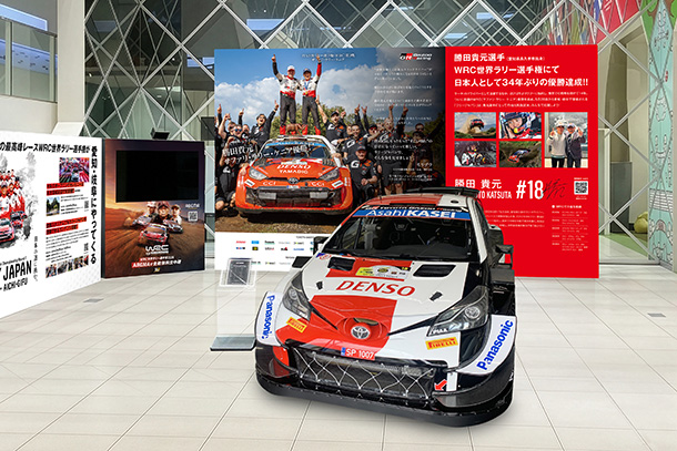 GAZOO Racing(以下、GR)は、TOYOTA GAZOO Racing World Rally Team(以下TGR-WRT)所属ドライバー・勝田 貴元のFIA世界ラリー選手権(以下、WRC)第3戦サファリ・ラリー・ケニア優勝を記念し、4月26日(日)よりミッドランドスクエア(愛知県名古屋市)において、勝田 貴元に関連するラリー車両を展示します。