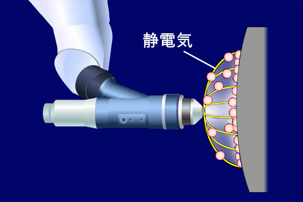 トヨタ自動車(株)(以下、トヨタ)は、車体塗装工程で従来から使用しているエアスプレー式の塗装機に代わり、静電気を活用し空気を使わない新型の塗装機(エアレス塗装機)を開発しました。今回開発したエアレス塗装機は、世界初となる新技術を駆使することにより、塗着効率(塗装の際に噴霧した塗料に対して実際に車体に塗着する塗料の割合)を従来型の60%~70%程度から、世界最高の95%以上に向上させています。