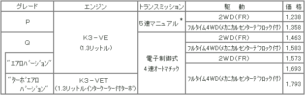 | * 電子制御式4速オートマチック車は110千円高。 |