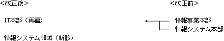 | ◆ | 情報事業本部と情報システム本部を、IT本部として統合するとともに、 IT本部内に情報システム領域を設置 |