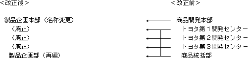 | ◆ | 本部内の各センターを廃止。 商品開発本部を製品企画本部に名称変更し、本部内の商品統括部を製品企画部として再編。 |