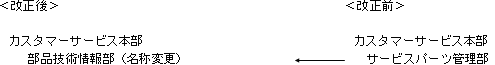 | ◆ | サービスパーツ管理部を、部品技術情報部に名称変更。 | ||