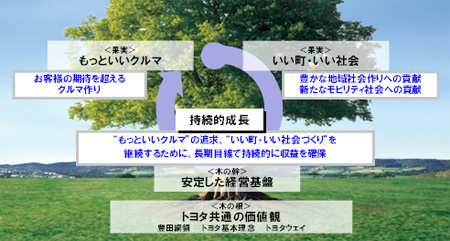 | ・ | トヨタがお客様に提供する「果実」は、「もっといいクルマ」づくりと、「いい町・いい社会」づくりへの貢献。 | |