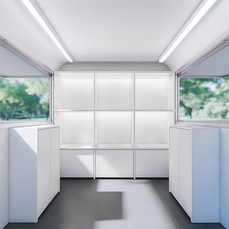 設置場所に縛られない、自由に展開できる移動型ユニット。トレーラー式の可搬構造により、都市部から郊外までどこでも空間を移動・設置が可能。「出店」「展示」「発信」などの機会を柔軟に創出します。
